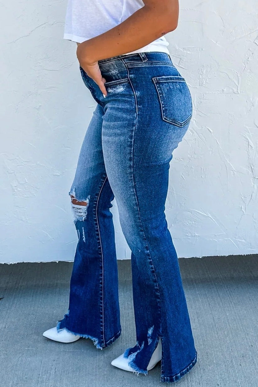 These split hem jeans provides style and versatility with its distressed design and bottom slits. These jeans are perfect for any occasion!