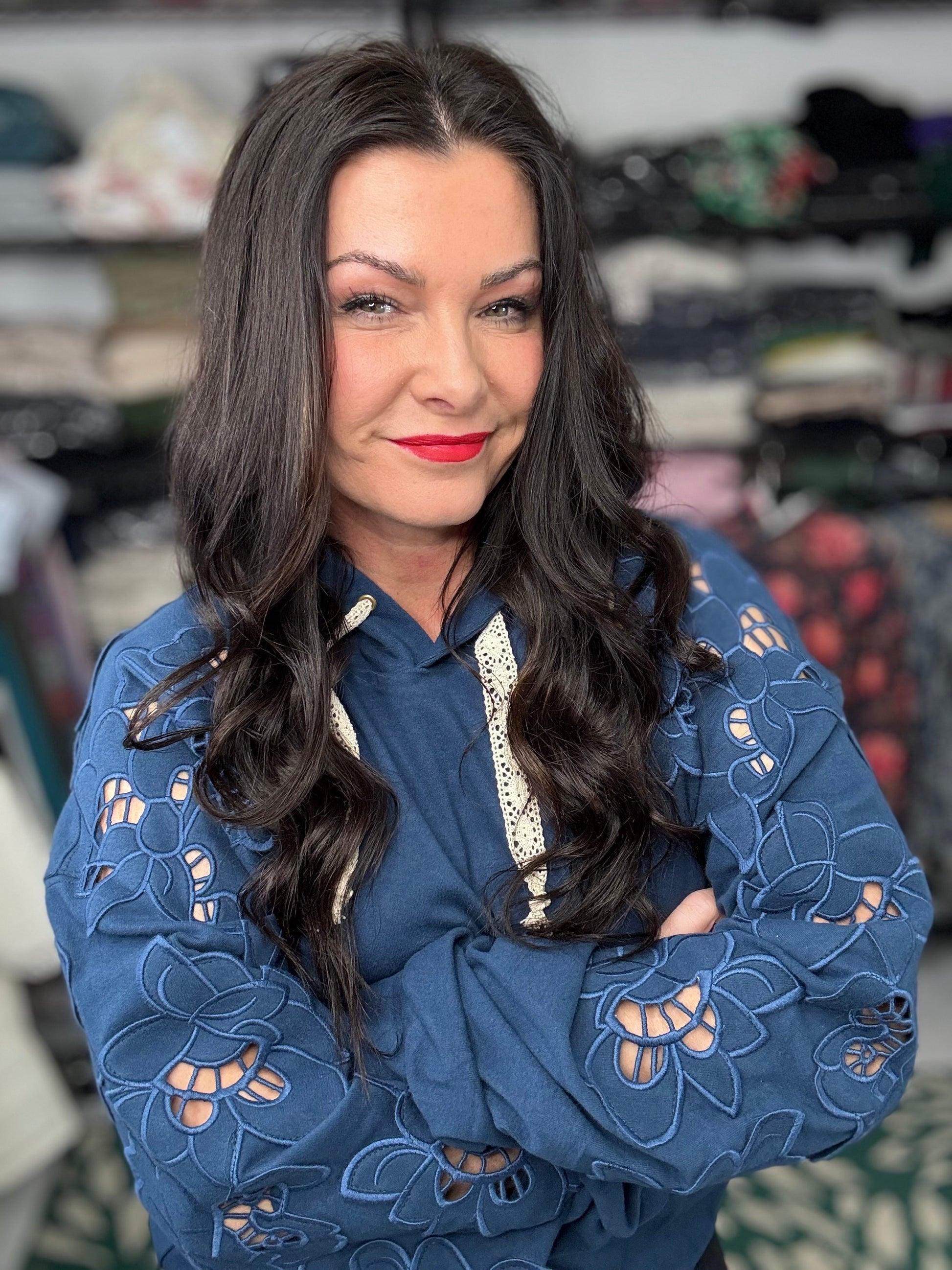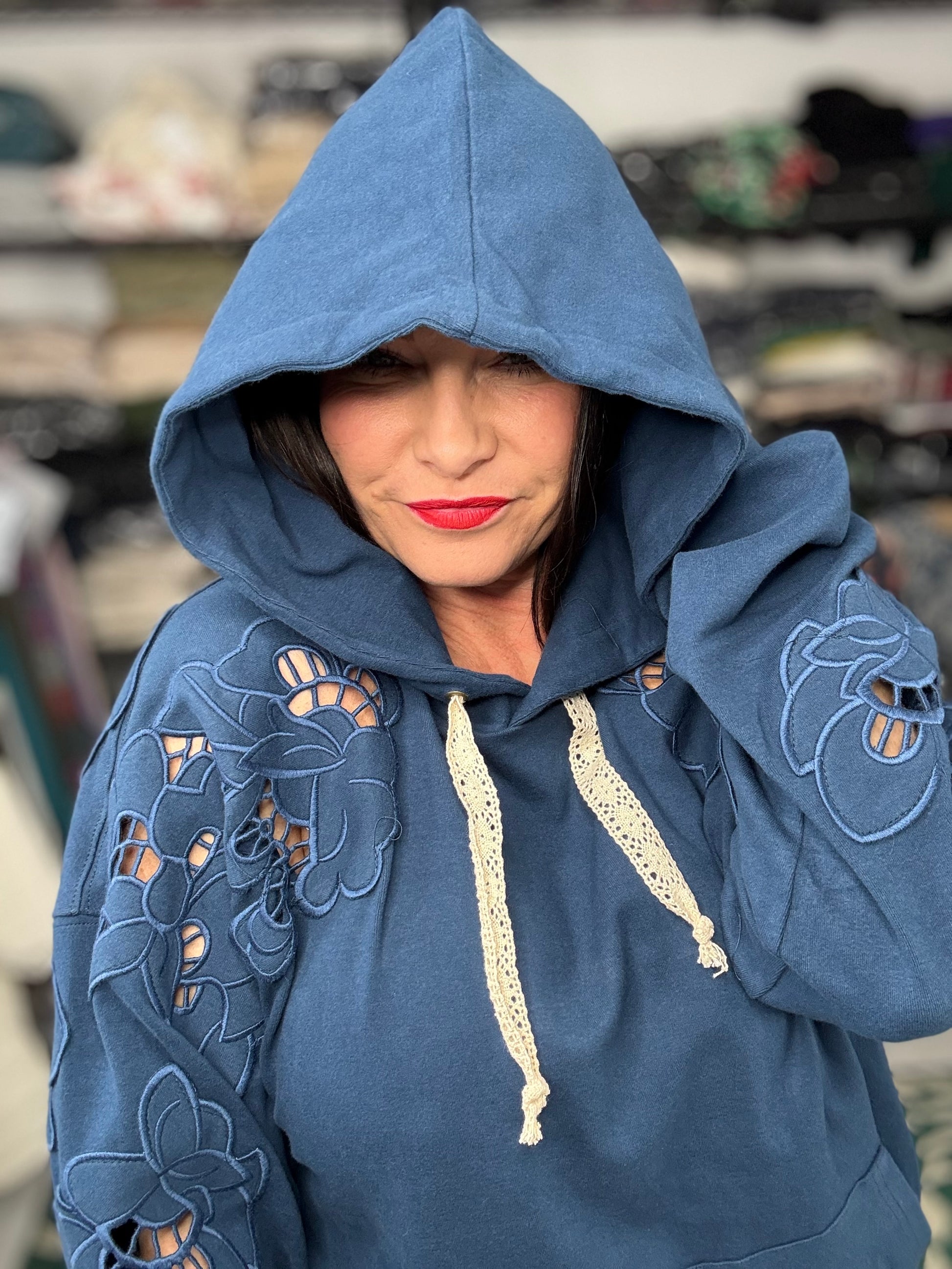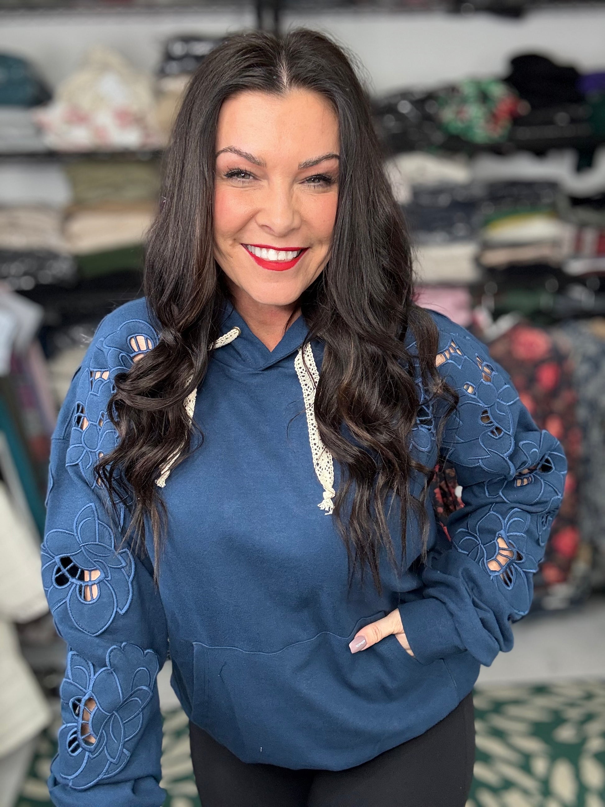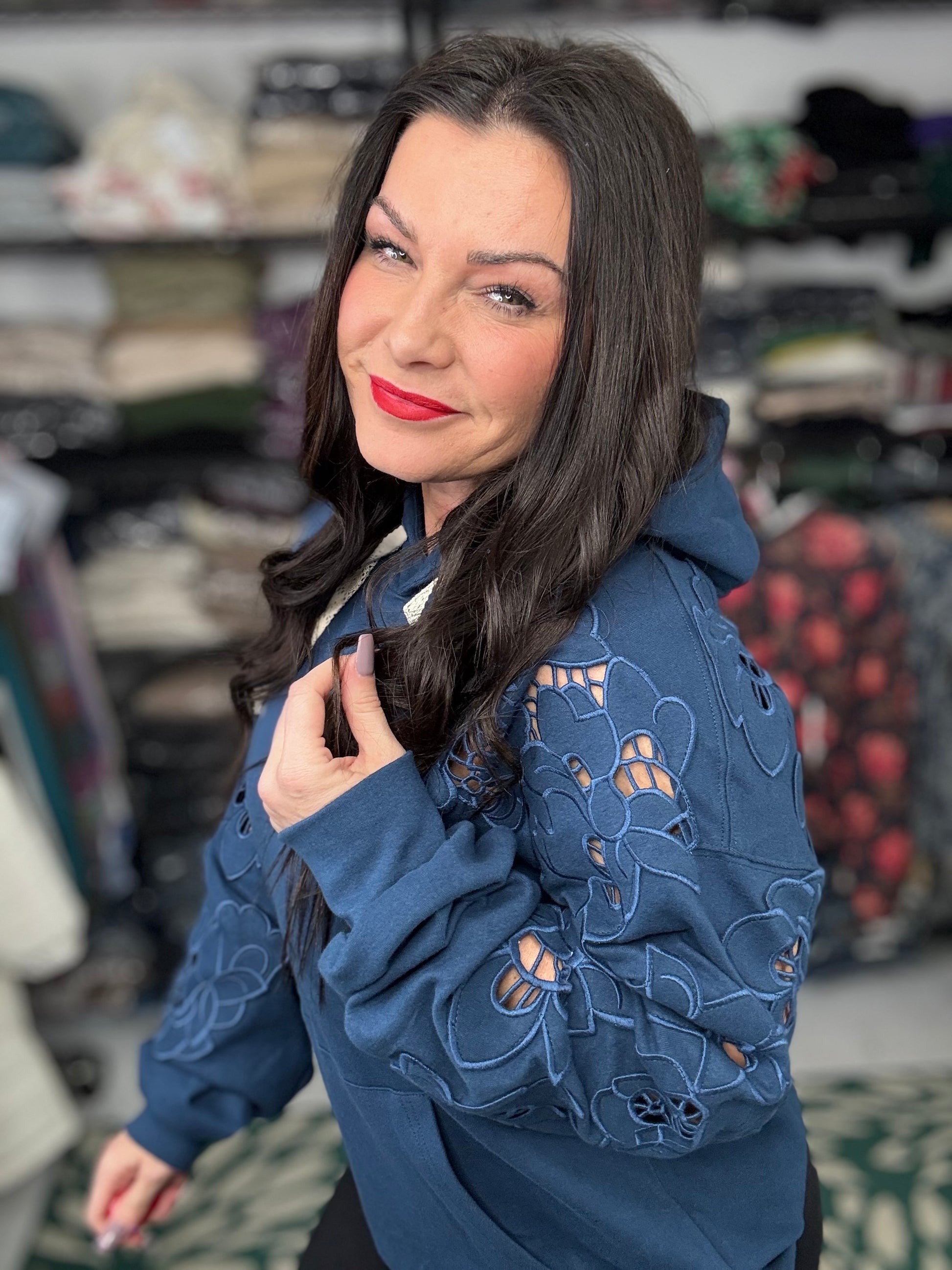 The triple stretch fabric ensures a comfortable, fitted look that flatters your figure while providing ease of movement. Crafted from a blend of 95% cotton and 5% spandex, this piece offers a cozy yet breathable fit, making it a perfect addition to your fall wardrobe.