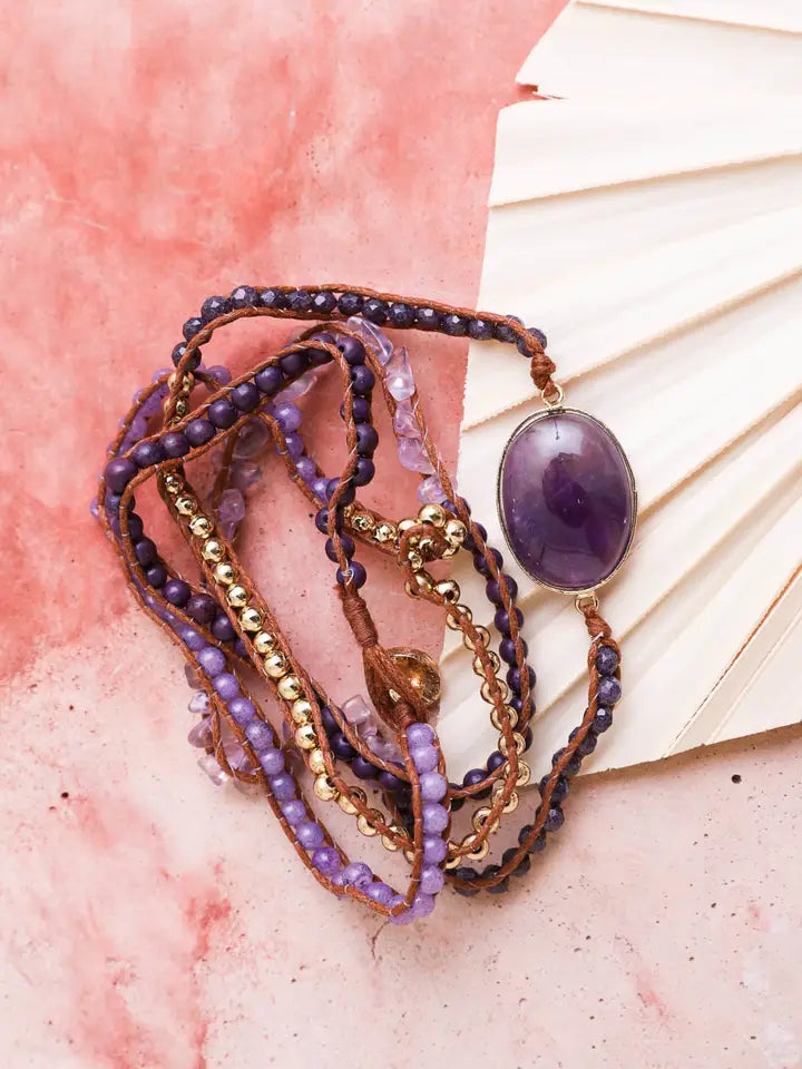 Enhance your boutique's collection with this stunning multi-wrap jewelry piece. It effortlessly transitions from a layered bracelet to a convertible necklace, offering versatility for any fashion-forward customer. Worn as both a necklace and bracelet, it provides endless styling options. Available in amethyst, rose quartz, and turquoise, this boho chic accessory features elegant crystal beads perfect for stacking or wearing solo. The adjustable, wrap-around design ensures a perfect fit, making it an ideal addition to any stylish wardrobe.