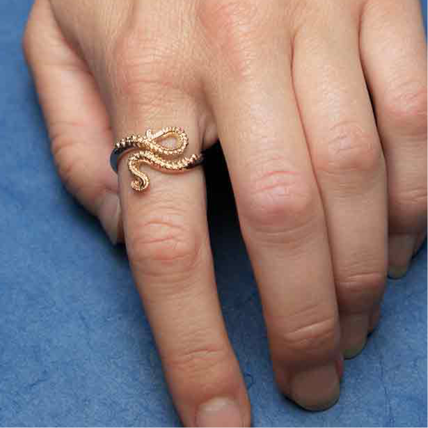 This octopus tentacle adjustable ring is perfect for those who are drawn to the mystery and illusive nature of octopi, squids, and cephalopods in general. The slender, sculptural tentacles and fine texturing are eye-catching. This graduation, the gentle curling, and slender size keeps this octopus ring on the elegant side.