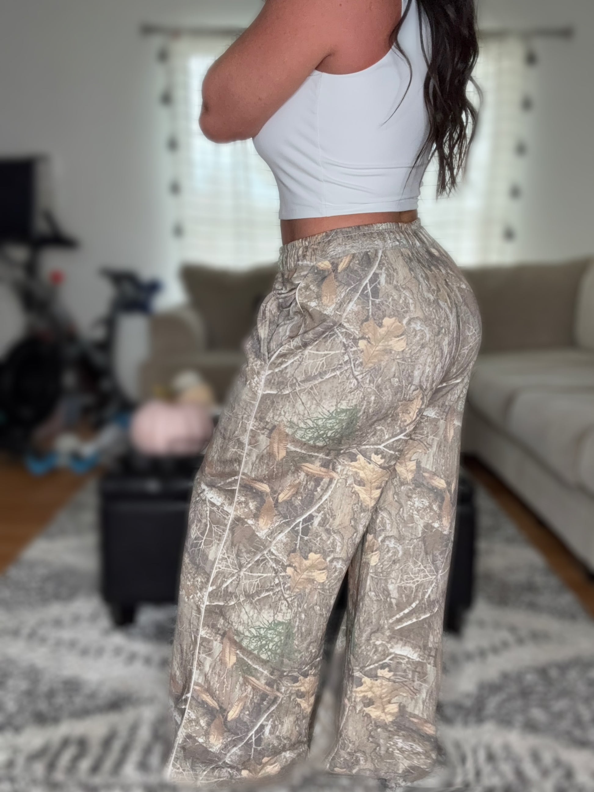 These washed camo printed pants scream ultimate comfort and style! These trendy pants feature side seam piping details, side pockets, and elastic waist with tie string. The BEST part is they match our NEW printed Easy Does It Pullovers (and also our Camo Classic Crew Pullovers)