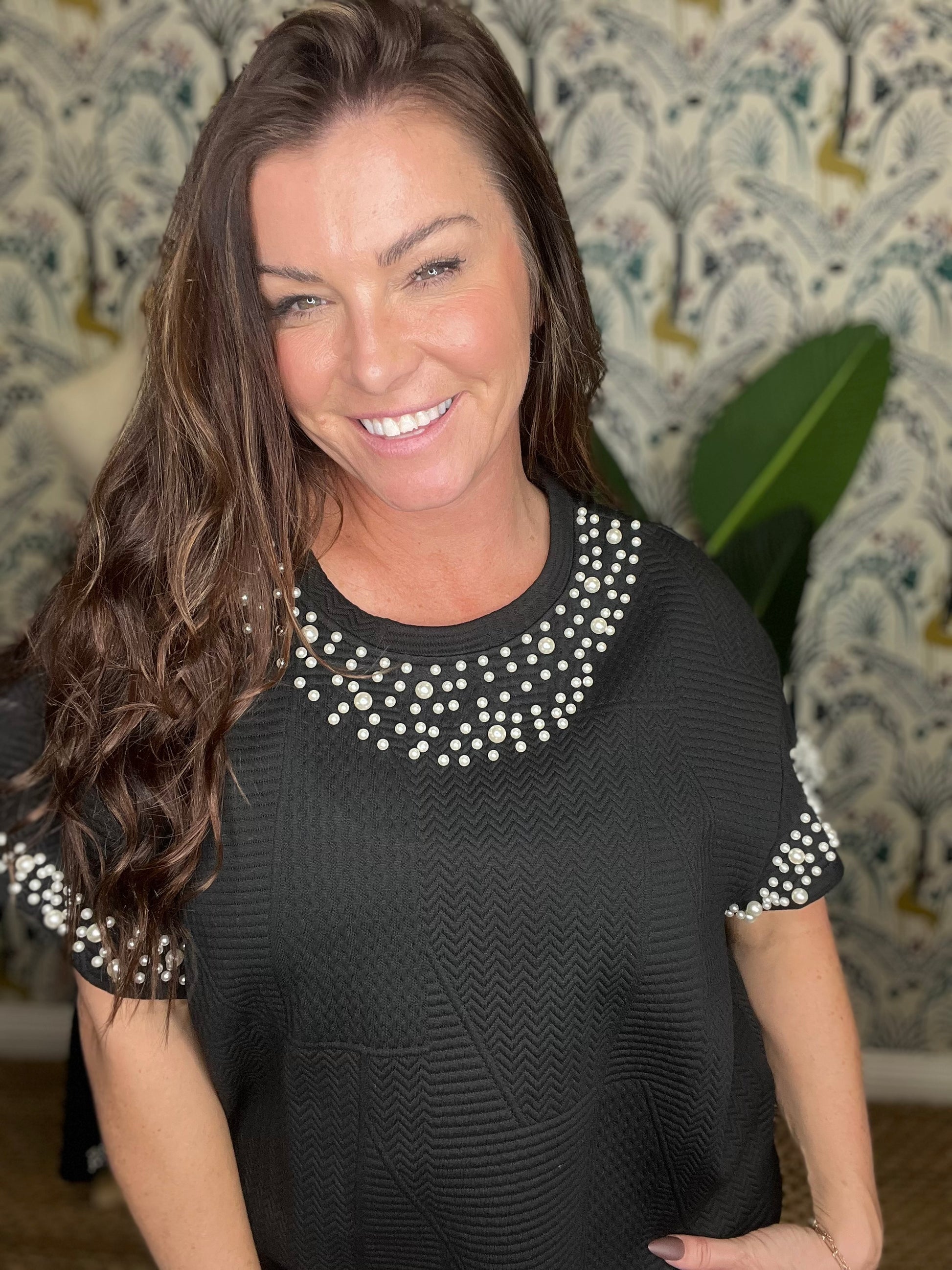 Pearl Detail Top and Pants Set- 3 Colors (Black, Cream, Deep Teal)