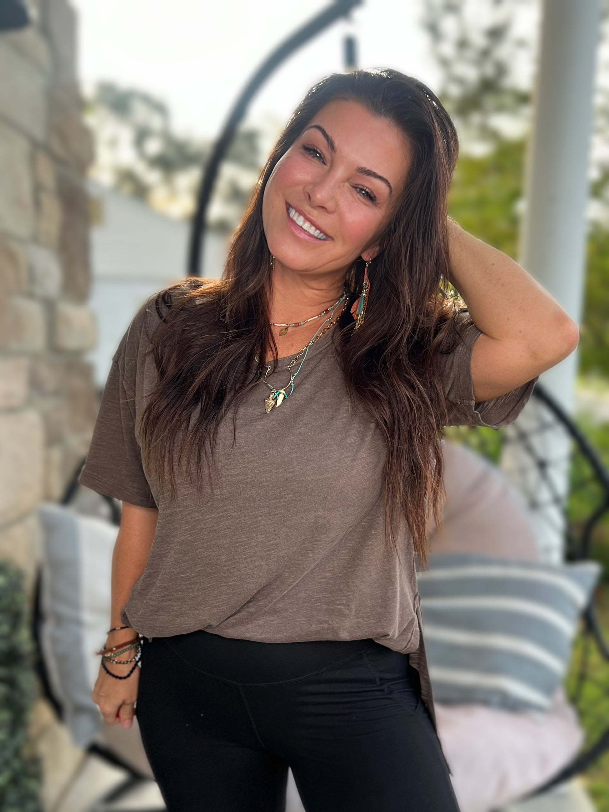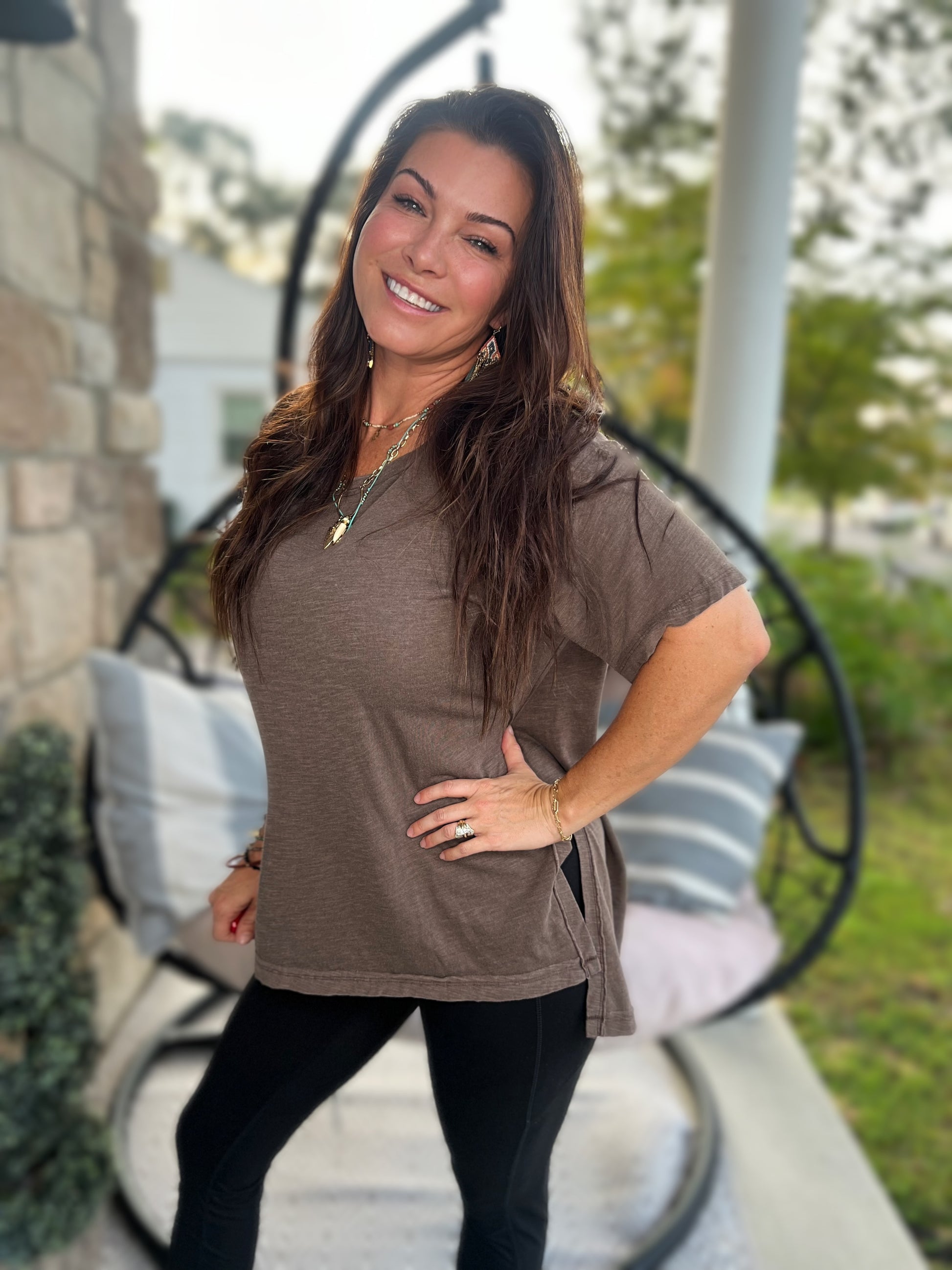 Designed for ultimate comfort and style, our Electric Love Short Sleeve shirt features a mineral washed fabric for a soft and worn-in feel. With a round neckline, short sleeves, and side slit for added detail, this shirt is perfect for a casual and relaxed look.