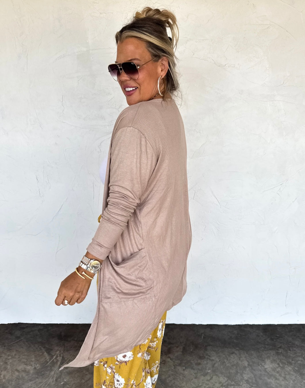 Falling for You Ribbed Cardigan- Mocha BB1205