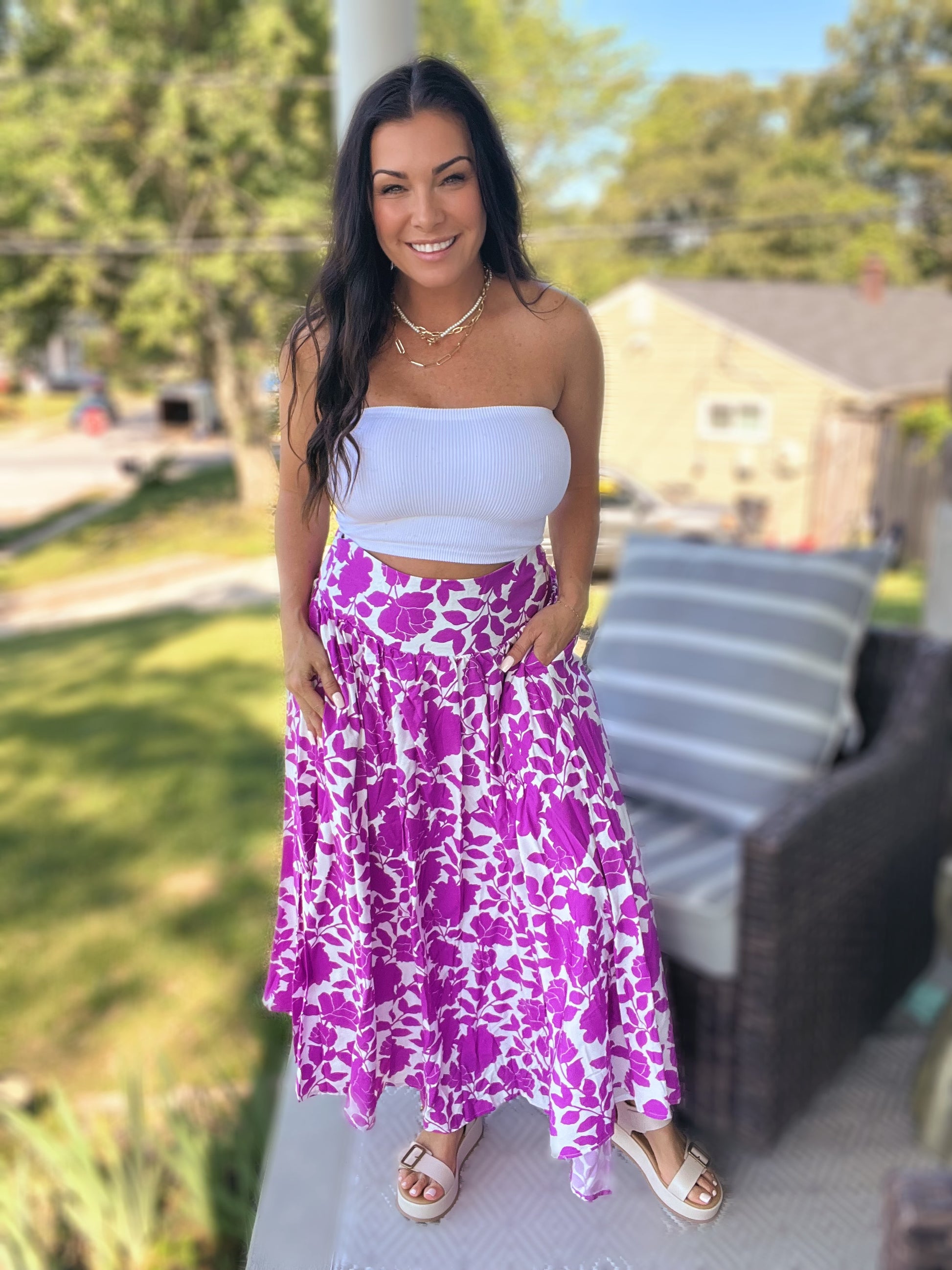 Expertly crafted with a smocked back, the Floral Daydreamer Skirt offers a flattering fit that accentuates your silhouette. The vibrant floral print adds a touch of whimsy to this versatile full skirt, making it perfect for any daydreamer's wardrobe.