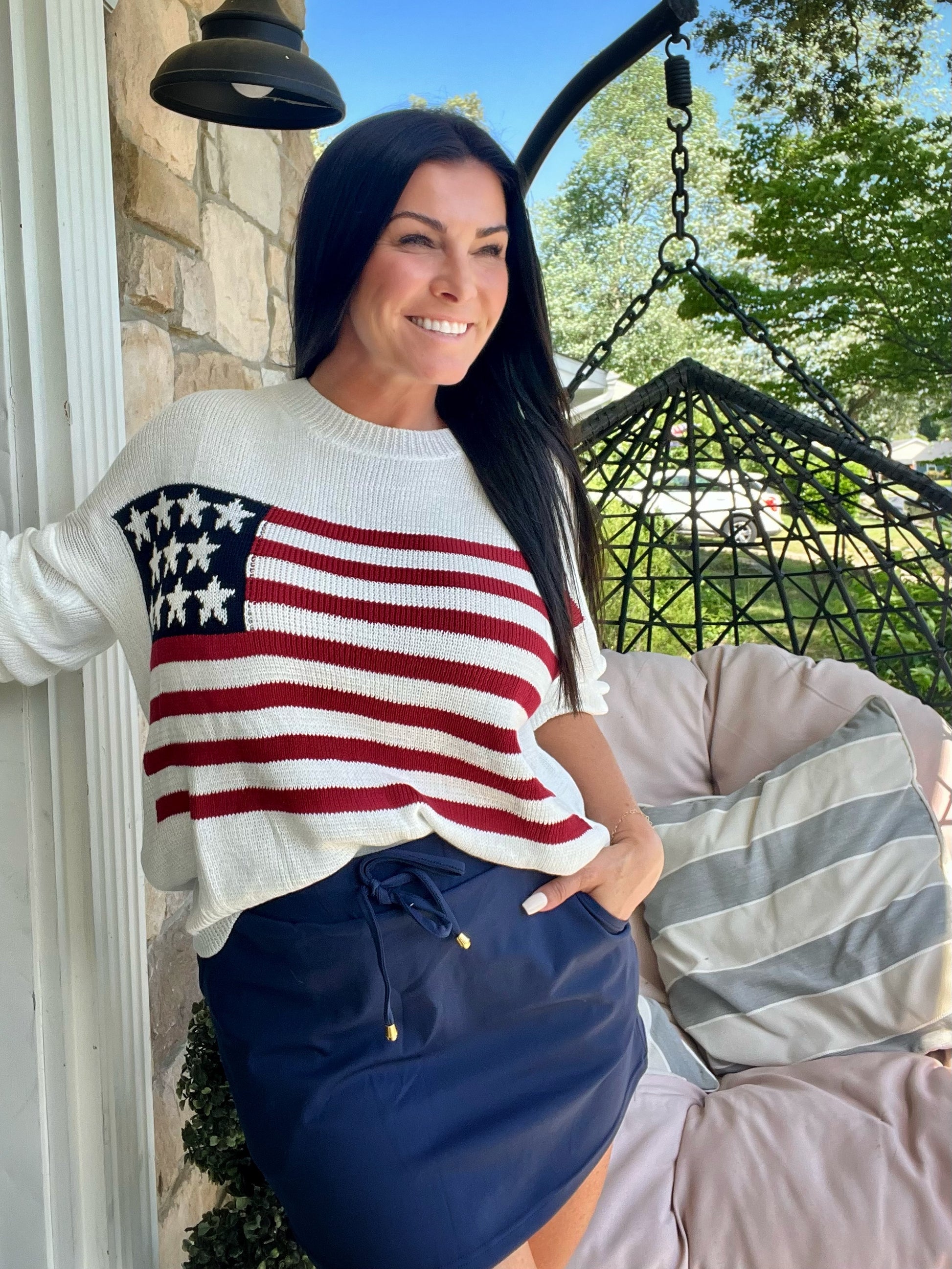Get ready to show off your American pride in style with our Americana Flag Sweater! This mid-weight knit sweater features a classic American flag design that you can wear anytime. Perfect for those who love showing off their love for the red, white, and blue.