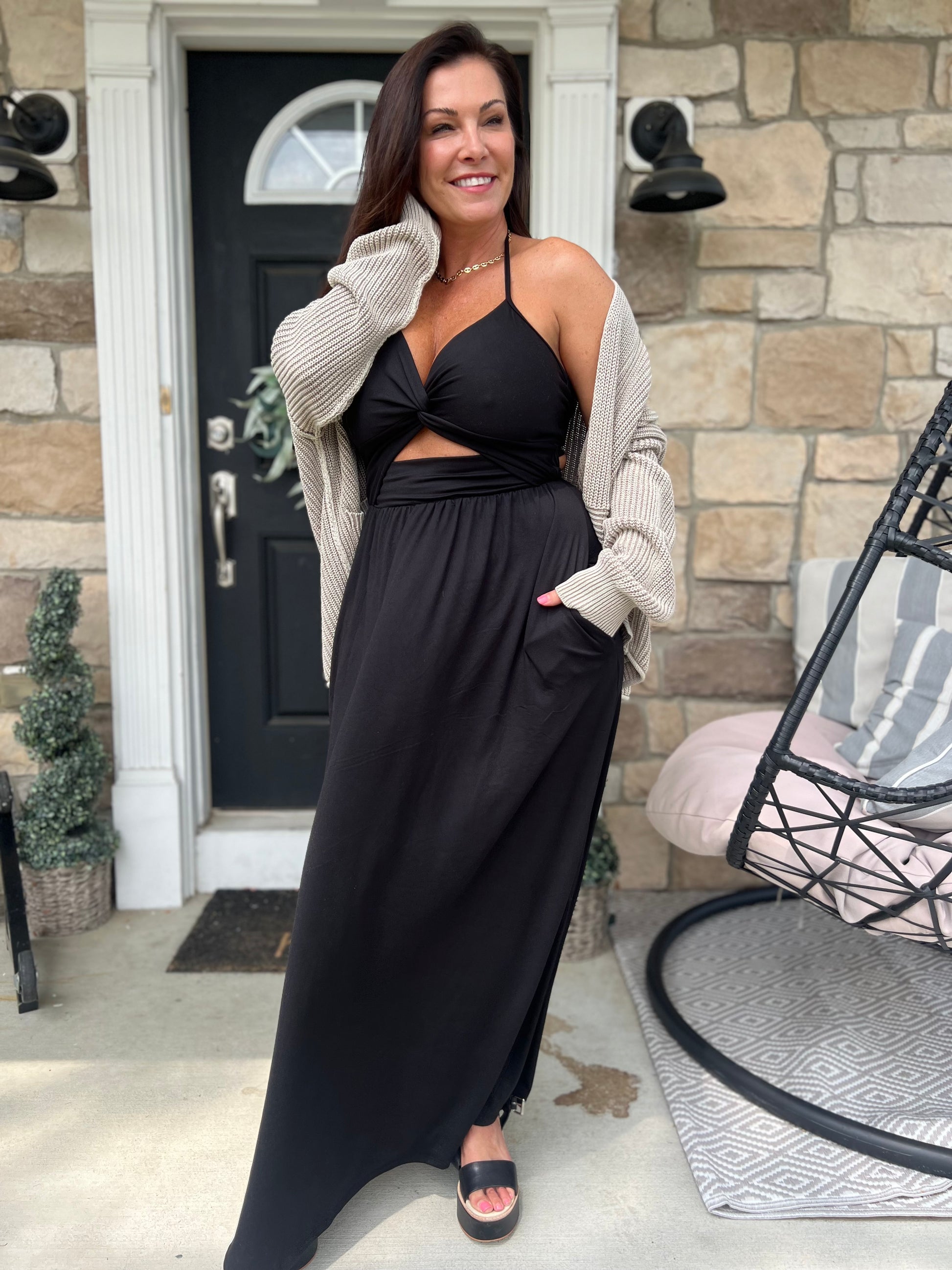Halter Knotted Tank Maxi dress with side pockets 😍