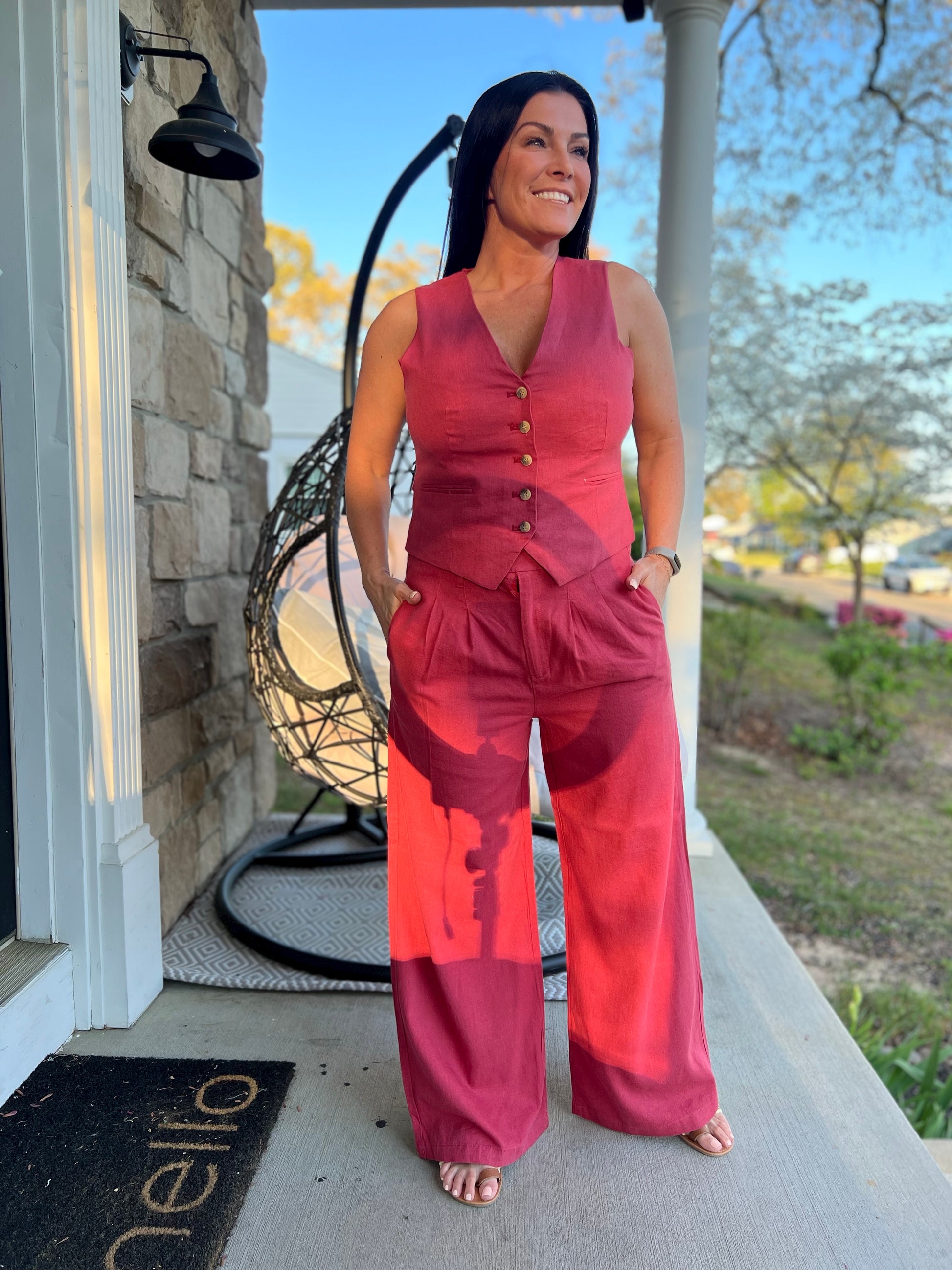 Crafted with a blend of linen fabric, the Risen Brick Linen Pants are perfect for a comfortable and effortless look. The slouch style adds a touch of relaxation to your outfit while maintaining a sophisticated and polished feel. Enjoy the benefits of breathable and durable linen in these versatile trousers.