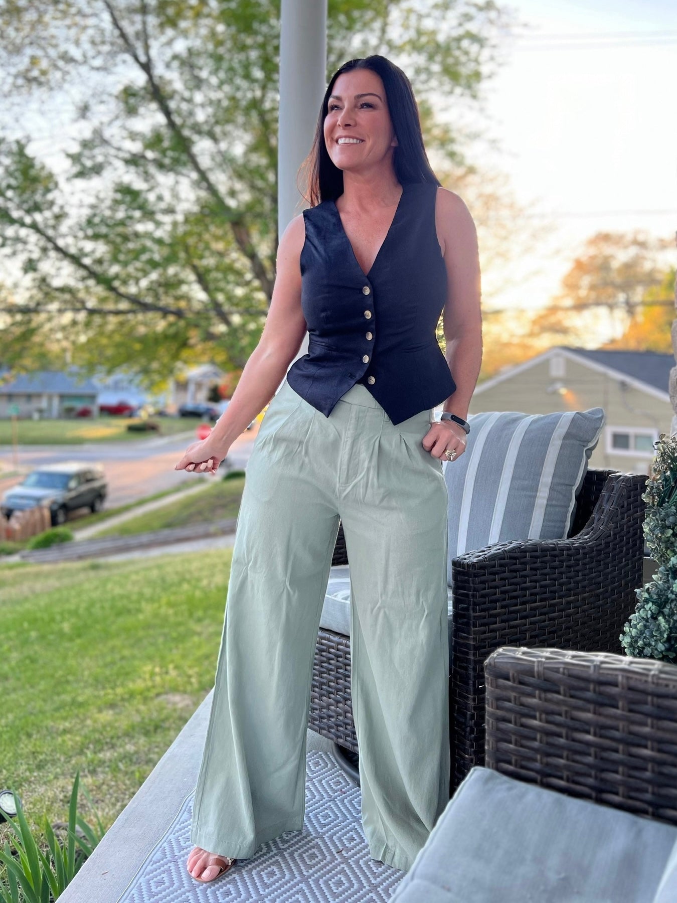 Crafted with a blend of linen fabric, the Risen Sage Linen Pants are perfect for a comfortable and effortless look. The slouch style adds a touch of relaxation to your outfit while maintaining a sophisticated and polished feel. Enjoy the benefits of breathable and durable linen in these versatile trousers.