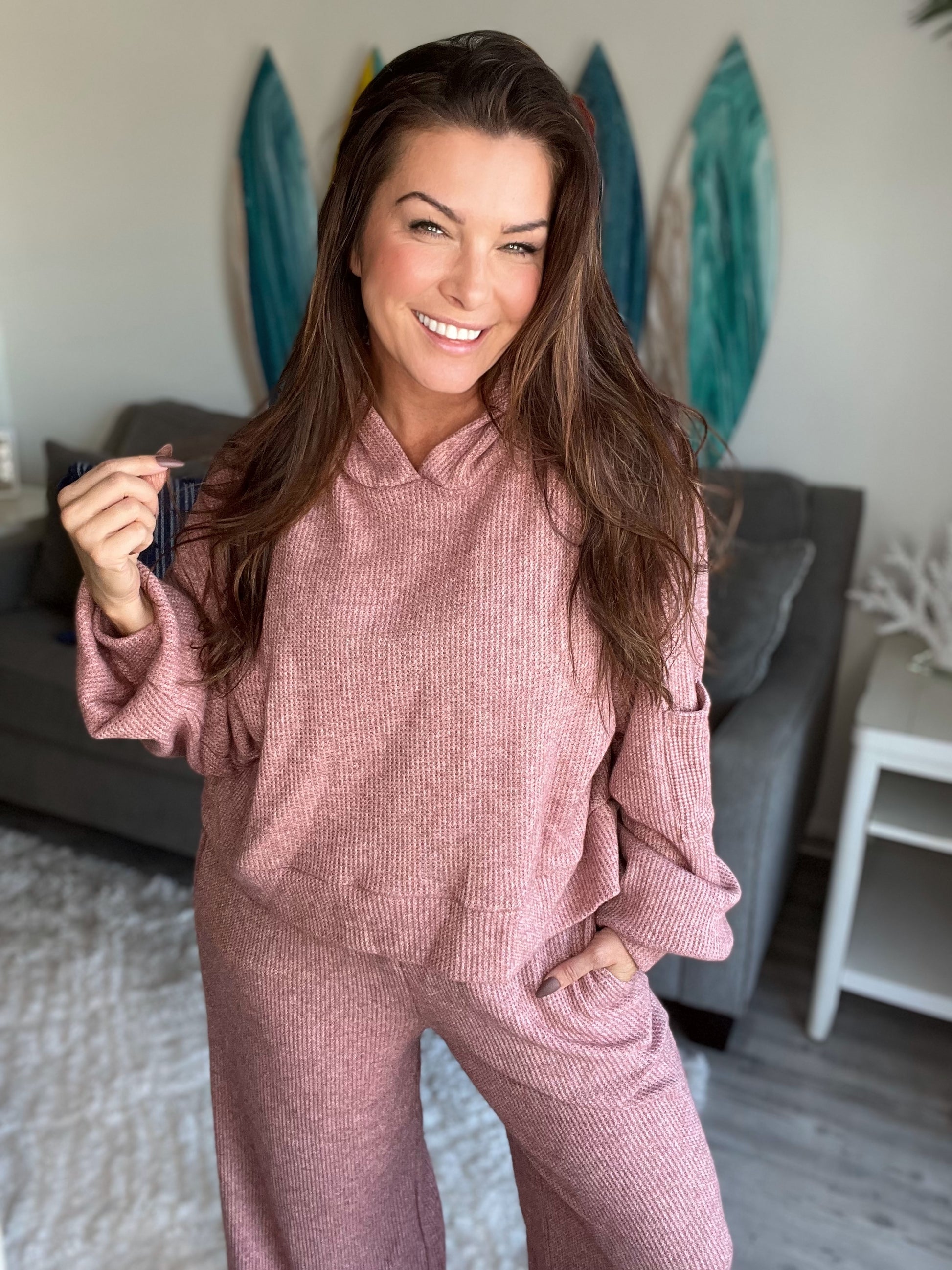 Introducing Marsala Fall Hooded Outfit - the perfect addition to your fall wardrobe. Made from luxurious waffle rib fabric, this set offers unbeatable comfort and warmth. A must-have for your boutique this season. 🍂
