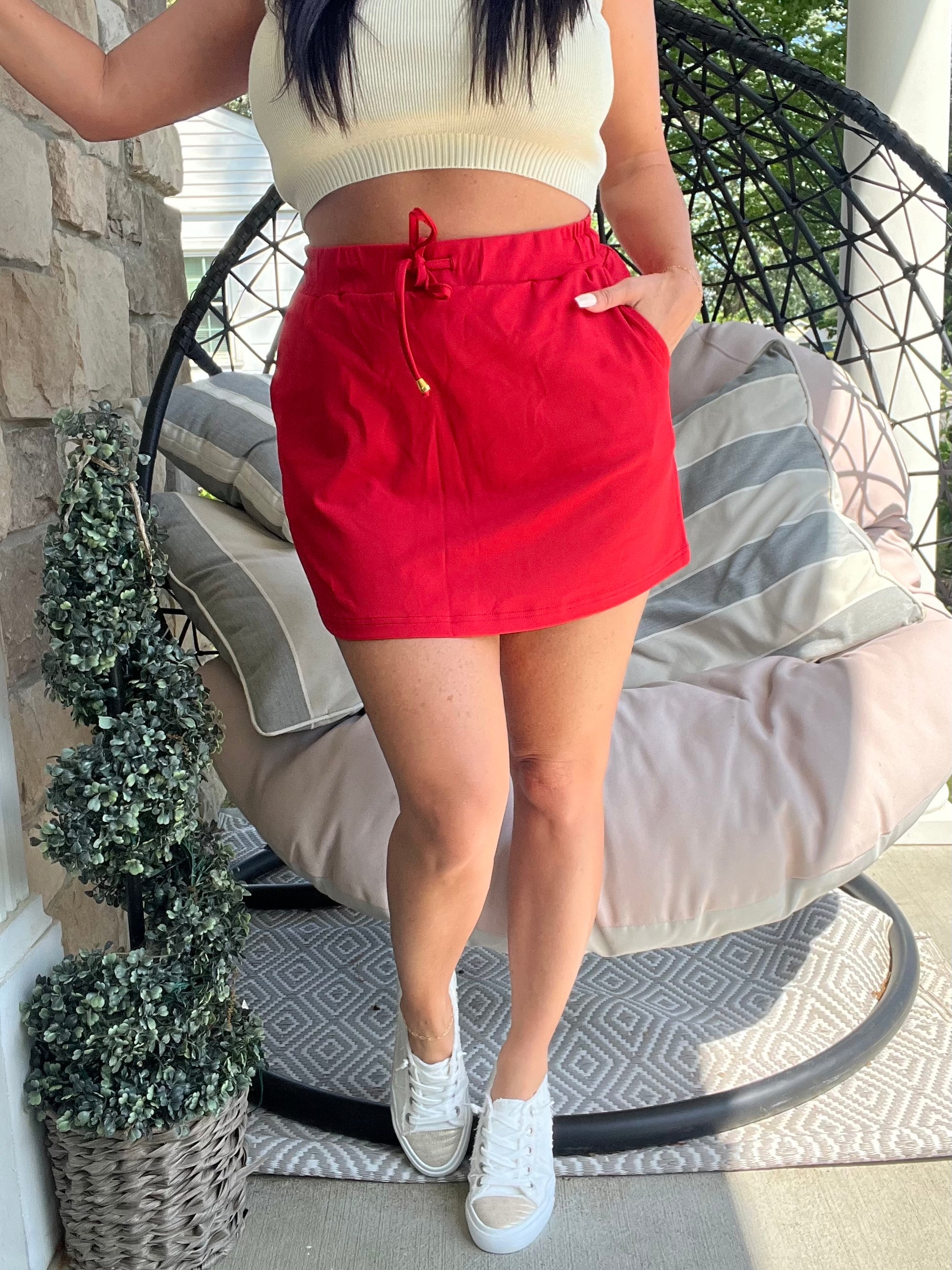 Red Summer Skirt w/ Built in Shorts & Pockets
