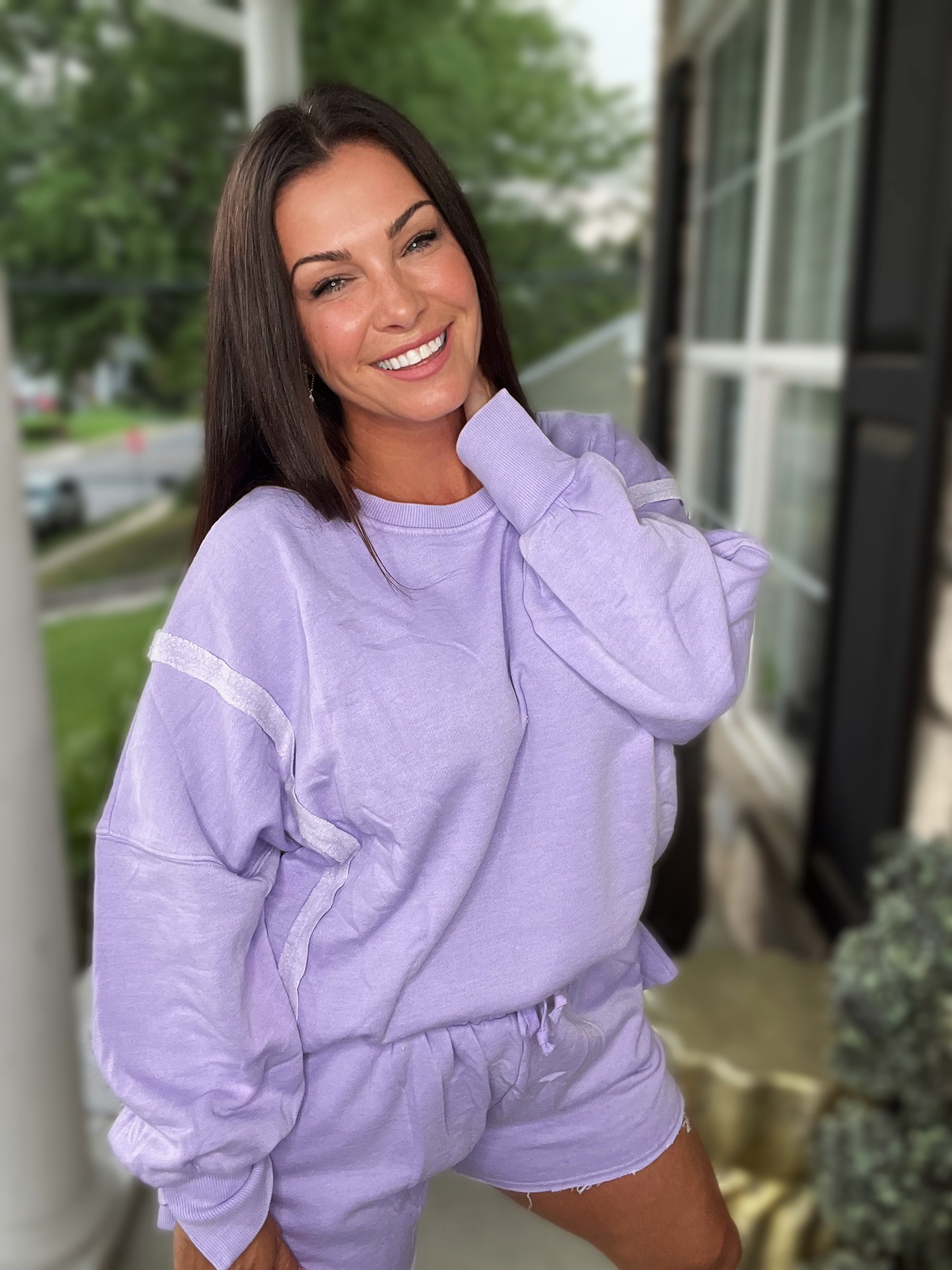 We spared no attention to detail in our sweatshirt! This forever timeless pullover is a slouchy, relaxed fit with exposed seaming, cute split cuff hem and ribbed trim detail! Has super soft "sweatshirt" feel on the inside!