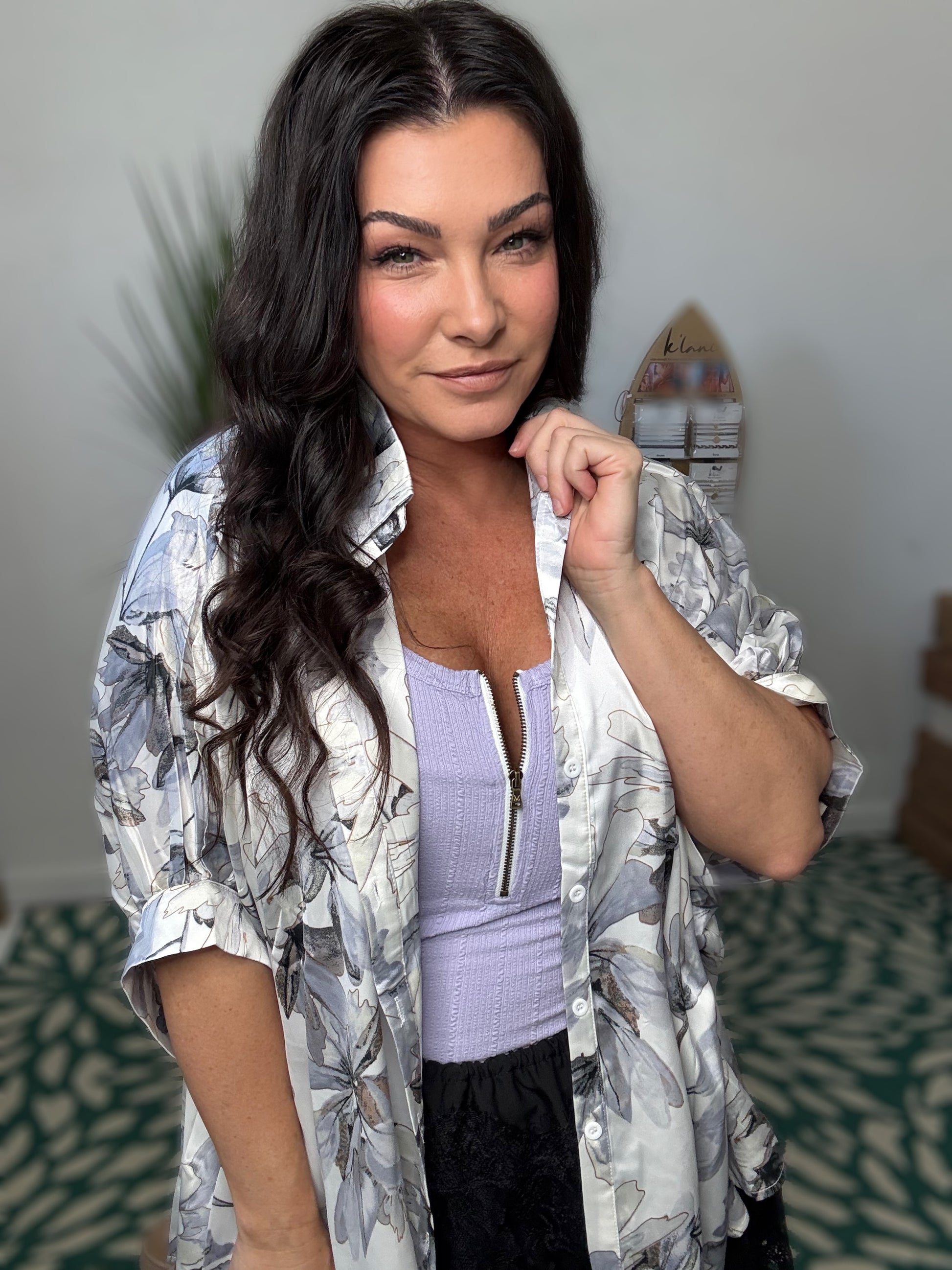 Make a statement with our Look My Way Oversized Top. Crafted from luxurious satin and featuring a trendy print, this top is perfect for any fashion-forward individual. The button-up design adds a touch of sophistication to any look. Express yourself in style and stand out from the crowd with this must-have piece.
